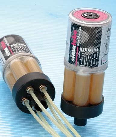simalube “小保姆”多点式注油器,是全球独一无二,由5个独立的8 ml 精密润滑油仓组成。可设定1~12个月的使用周期,全自动、均匀、准时、准确的同步注入5个不同的润滑点。独特的离合设计,可于数秒内轻易的把耗尽的注油器卸下更换。